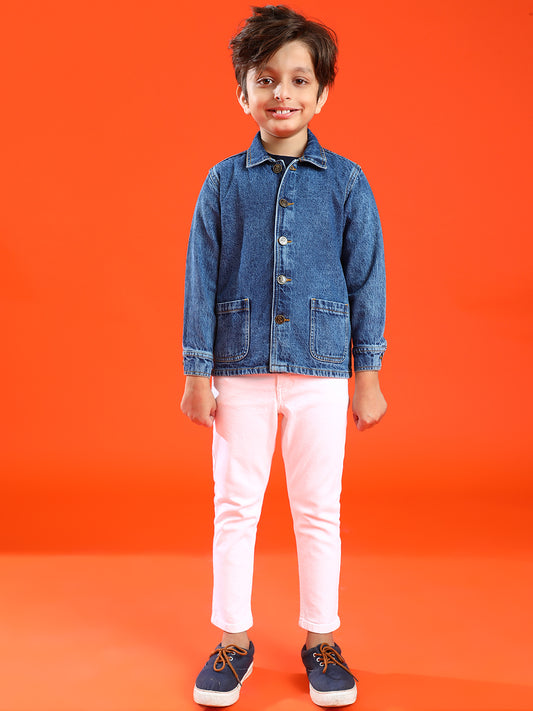 Boy Khakhi Cotton Full Sleeves Washed Jacket