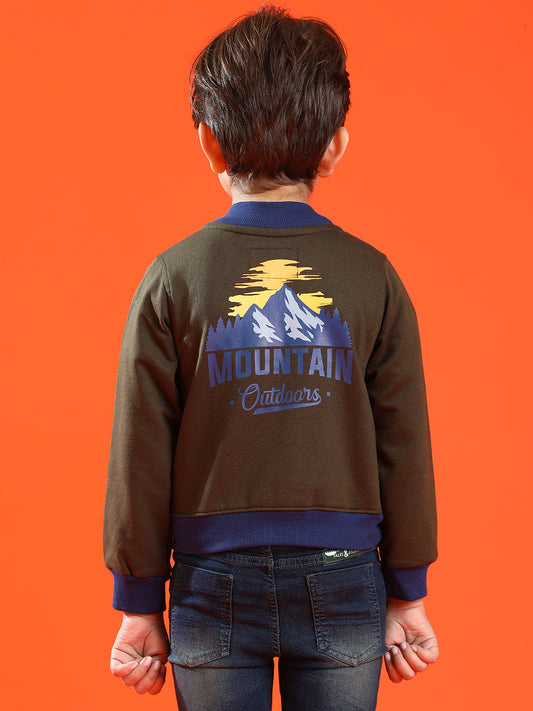 Boys Olive Cotton Solid Sweatshirt