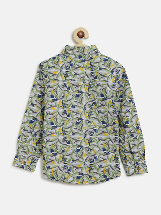 Boys Olive Leaf Printed Shirt