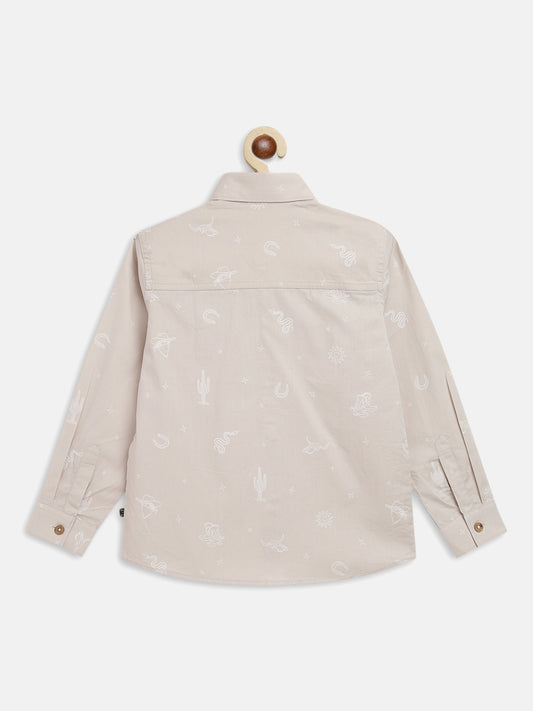 Boys Beige Printed Shirt