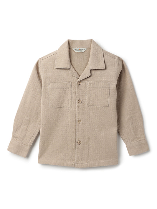 Boys Beige Cotton Solid Full Sleeves Regular Fit Shirt