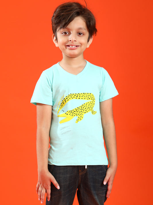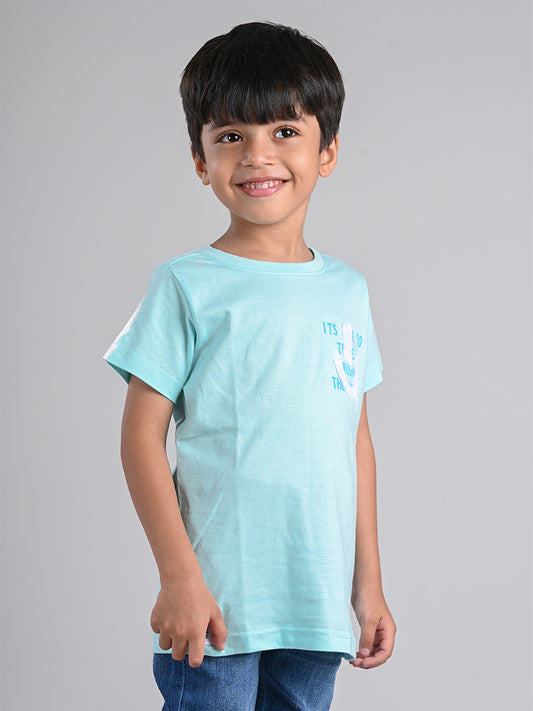 Boys Aqua 100% Cotton Printed T-shirt