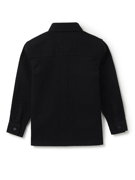 Boys Black Full Sleeves Cotton Embroidered Shacket