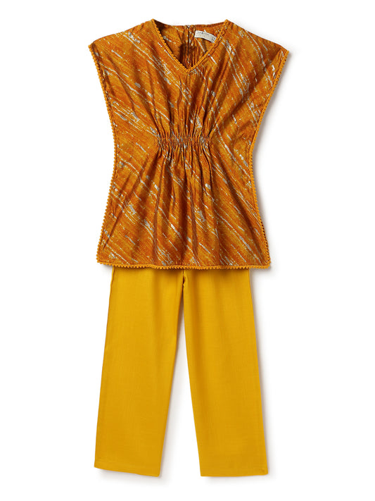 Girls Yellow Printed Ethnic Kurta with Pants Set