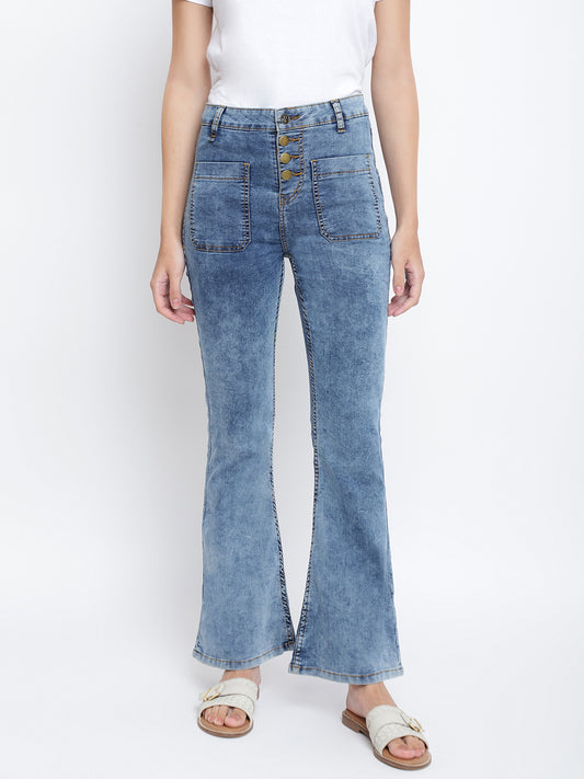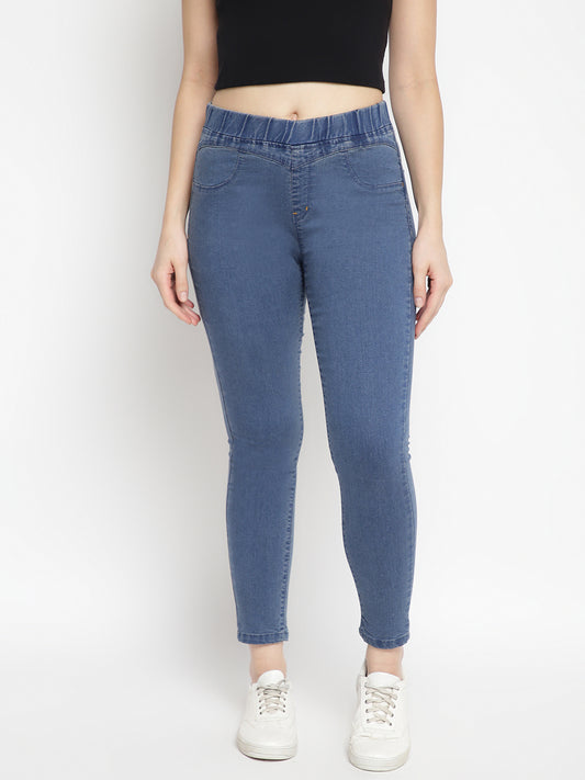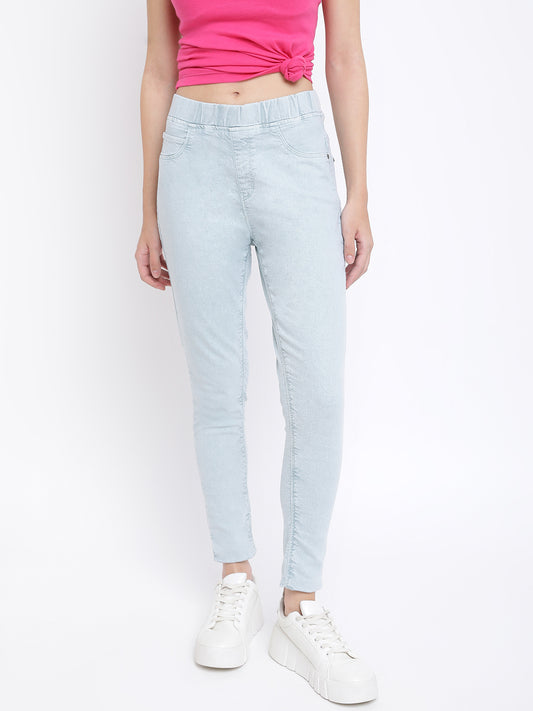 Women Light Blue Mid Waist Skinny Fit Denim Jeans