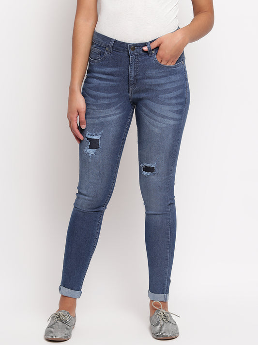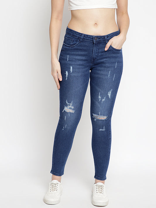 Women Dark Blue Skinny Fit Distressed Denim Jeans