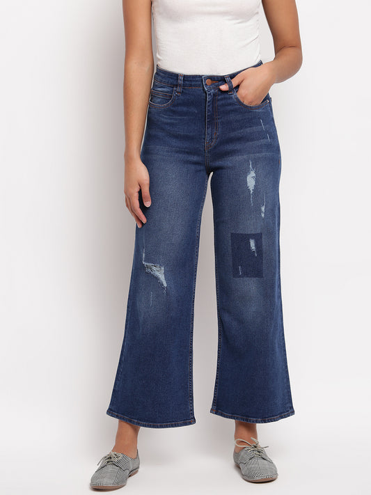 Women Denim Dark Blue Slouchy Lycra Washed Jeans