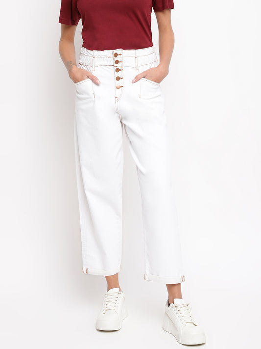 Womens Off White Lycra Washed Skinny Fit Jegging