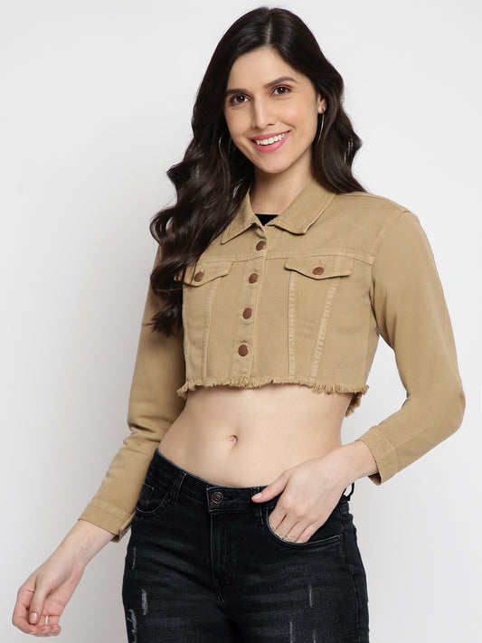 Sold outWomen Khaki Cropped Denim Jacket
