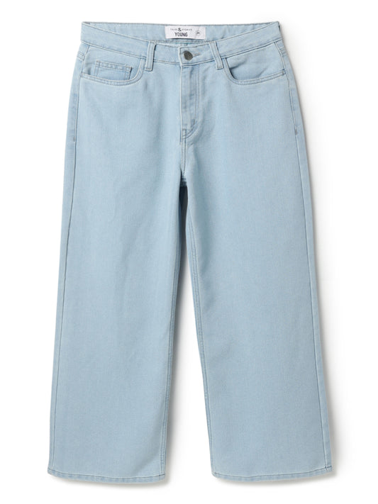 Womens Light Blue Flare Fit Bleach Washed Denim Jeans