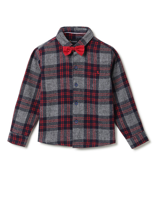 Boys Multicolor Check Flannel Shirt with Bow Tie