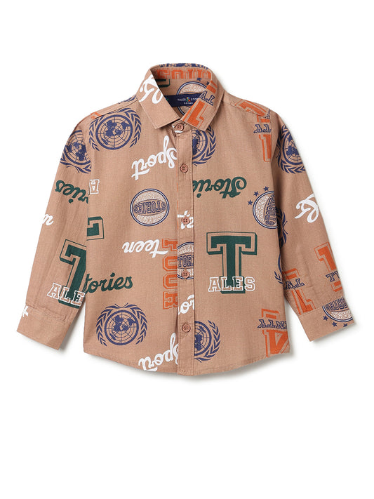 Boys Beige Cotton Solid Full Sleeves Regular Fit Shirt