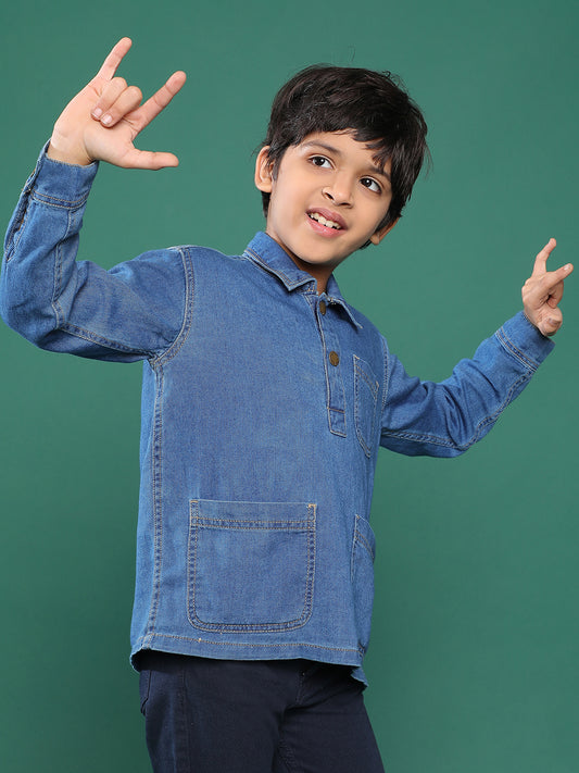 Boys Dark Blue Cotton Slim Fit Printed Jeans