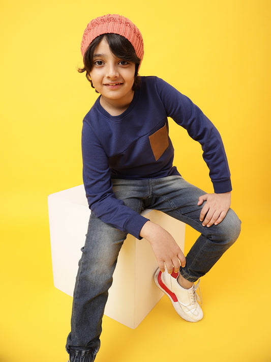 Boys Regular Fit navy Blue Casual Sweatshirt
