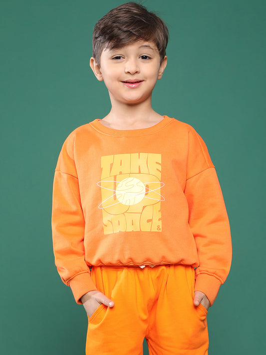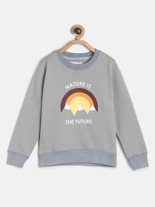 Boys Off White Cotton Poly Digital Print Sweatshirt