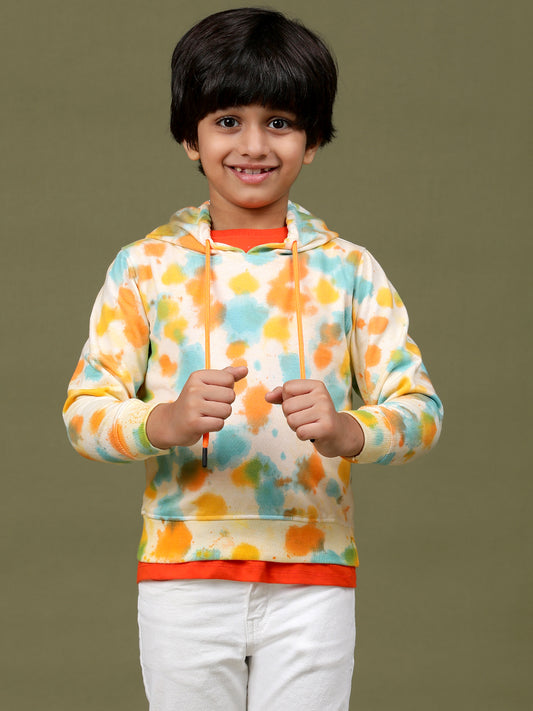 Boys Pestel Yellow Cotton Tie and Dye Sweatshirt