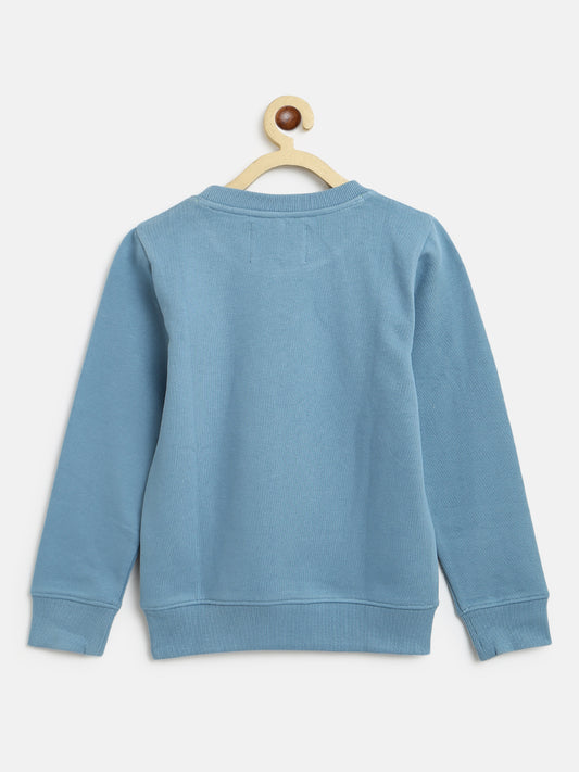 Boys Navy Blue Poly Cotton Printed Sweatshirt