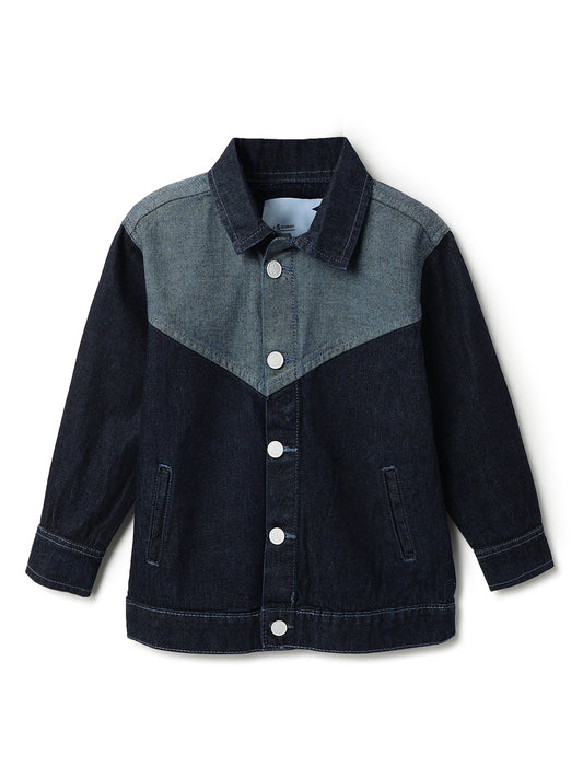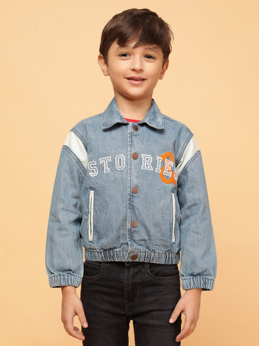 Boys Blue Denim Cotton Washed Full Sleeve Jacket