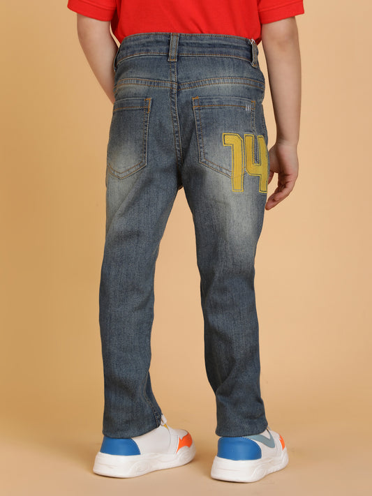 BOYS MID BLUE WHISKERED CASUAL JEANS