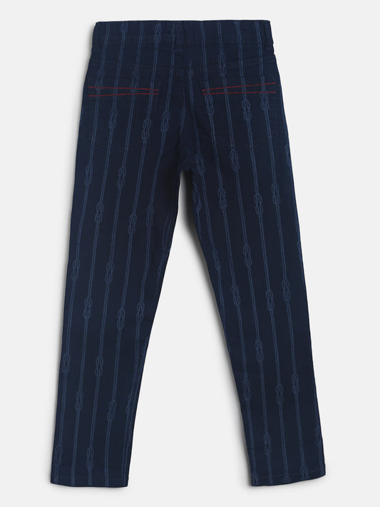 BOYS SLIM FIT DARK BLUE PRINTED JEANS