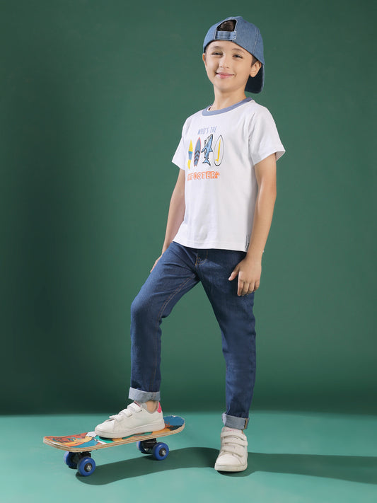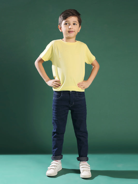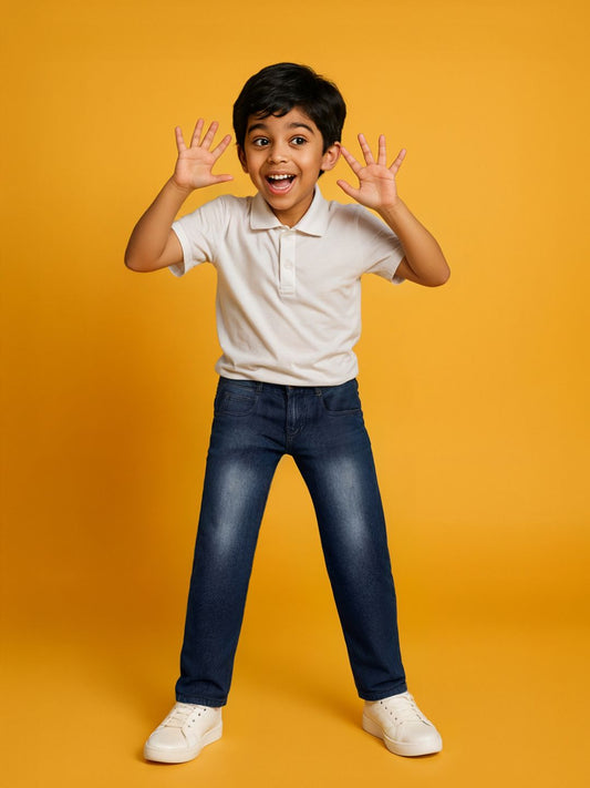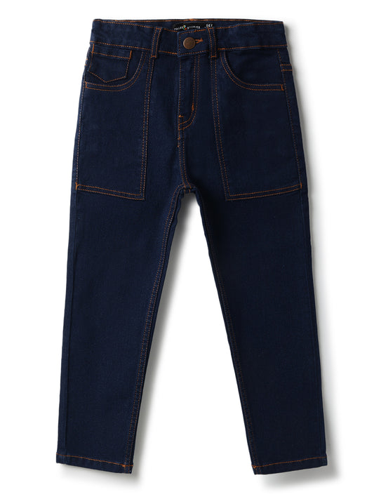 Boys Dark Blue Cotton Polyester Solid Jeans