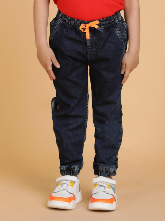 Boys Dark Blue Solid Lycra Slim fit Joggers