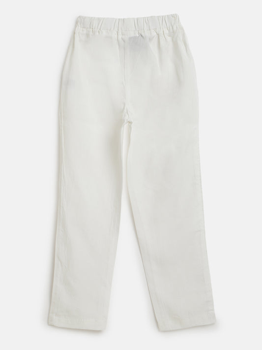 Boys Beige Washed Lycra Slimfit Trouser with Suspender