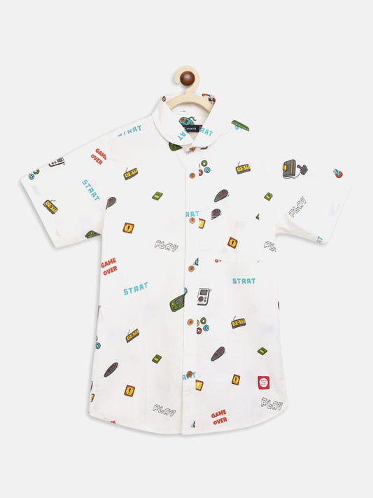 Boys Grey Half Sleeve Casual Printed Cotton Shirt