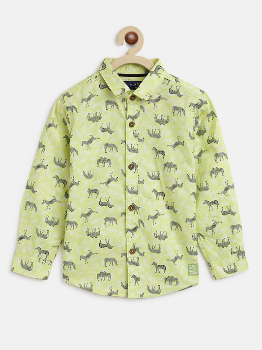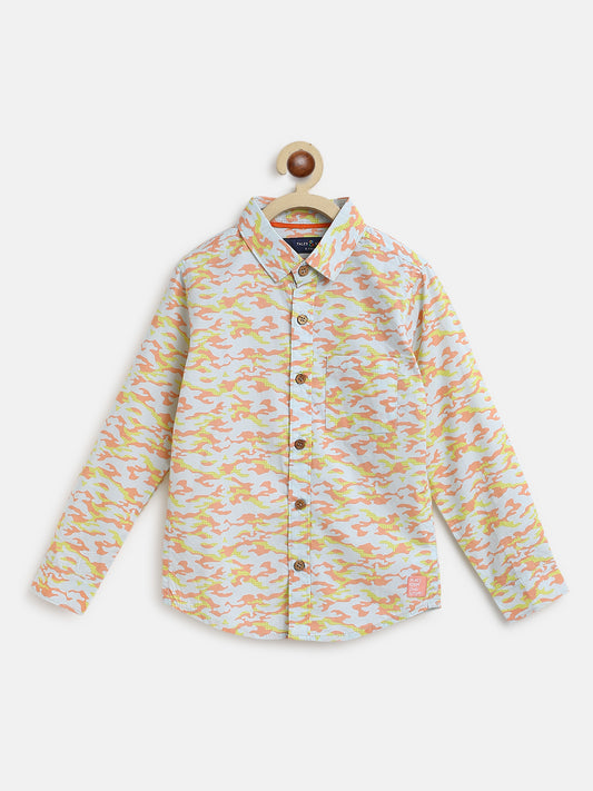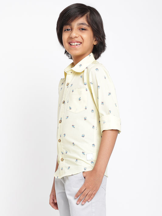 Boys Sky Blue Cotton Printed Full Sleeves Regular Fit Shirt