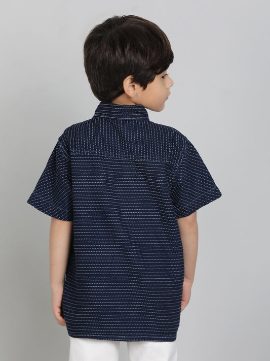 Boys Blue Striped Cotton Half Sleeve Shirt