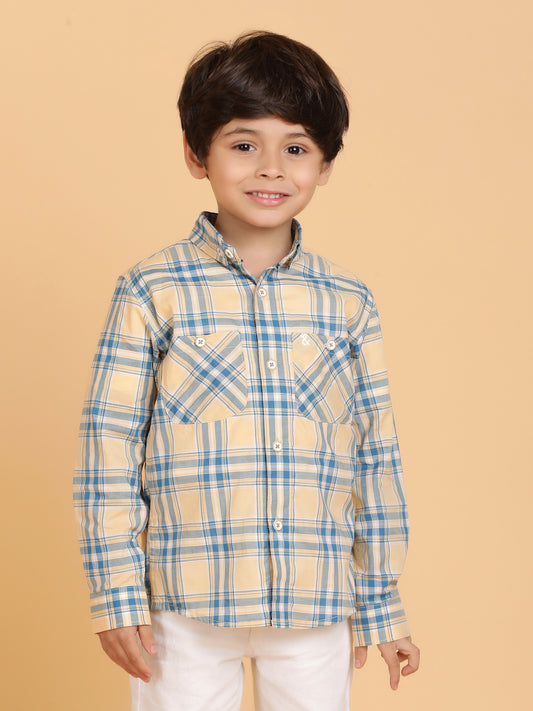 Boys Beige Casual Full Sleeve Checked Cotton Shirt