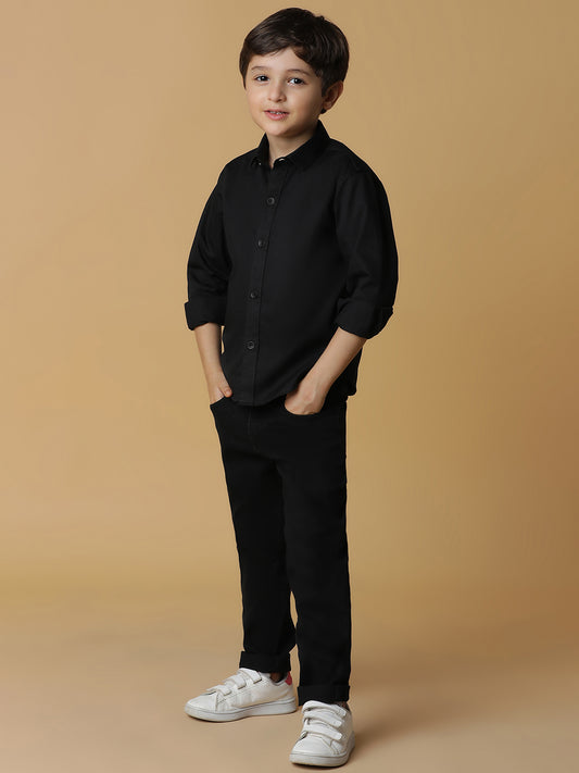 Boys Solid Light Blue Cotton Regular Fit Full Sleeve Shirt