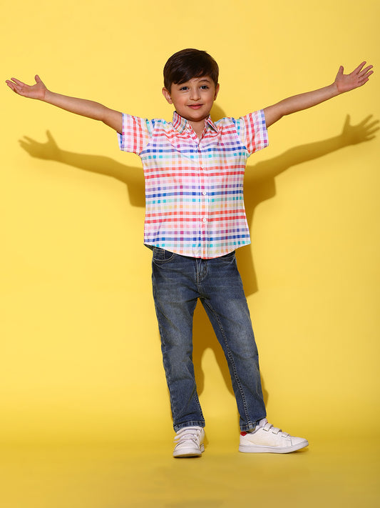 Boys Multi Color Half Sleeves Viscos Checked Regular Fit Shirt
