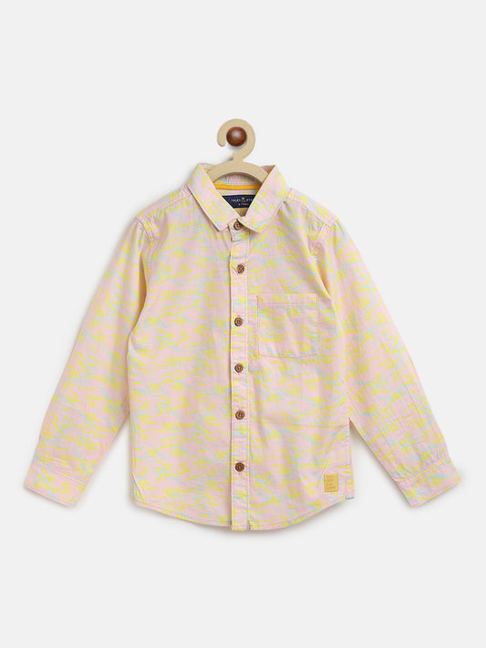 Boys Pink Viscose Casual Printed Full-Sleeve Shirt