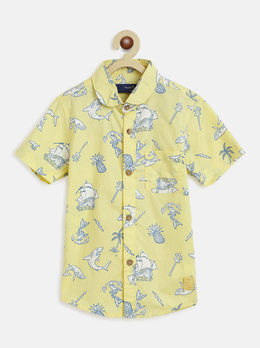Boys Yellow Half Sleeves Viscos Printed Regular Fit Shirt