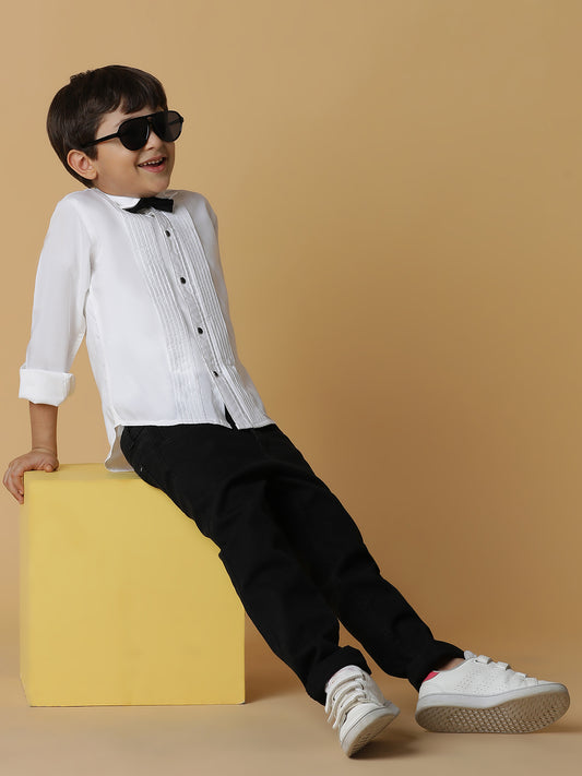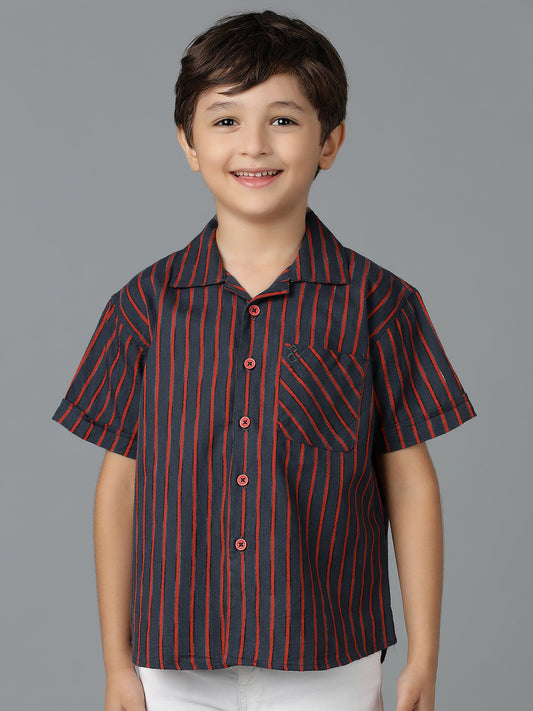 Boys Red & Black Striped Cotton Regular Fit Shirt