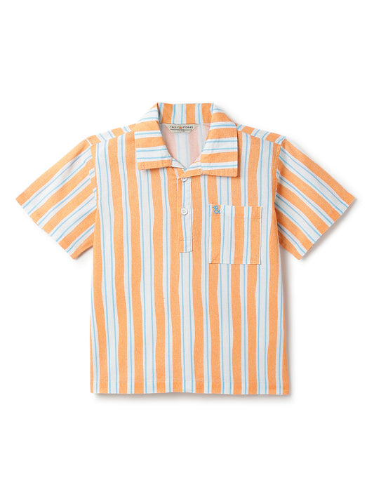 Boys Cotton Orange Striped Oversized Fit Shirt