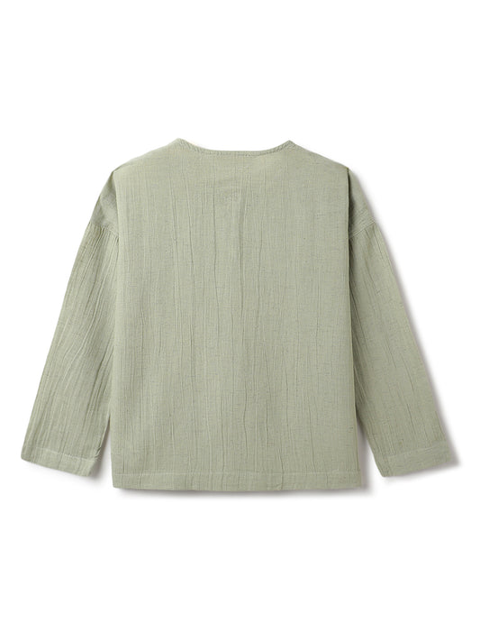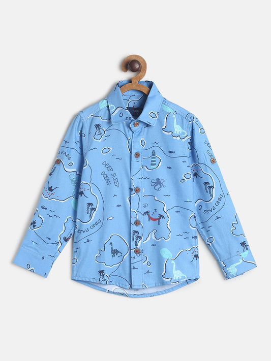 Boys Green Cotton Printed Shirt & Short Co ords Set