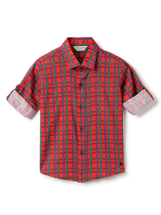 Boys Multi Color Cotton Poly Checked Regular Fit Shirt