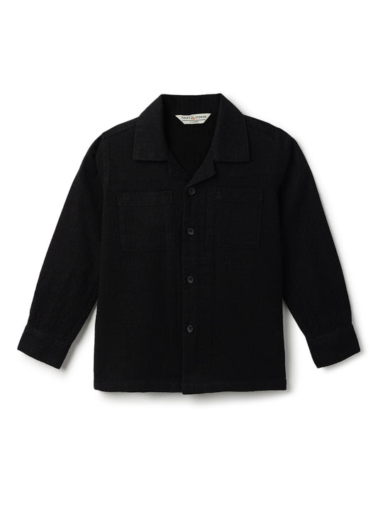 Boys Black Solid Oversized Cotton Shirt