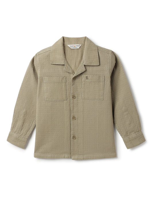 Boys Olive Solid Oversized Cotton Shirt