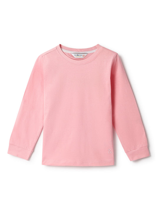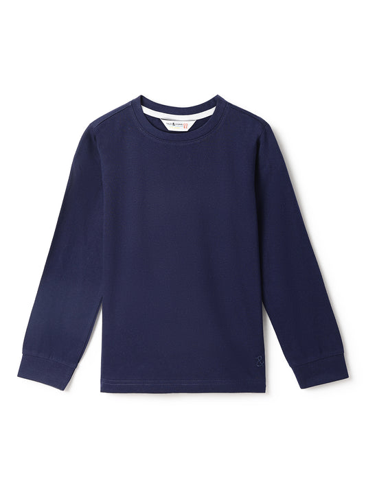 Boys Olive Cotton Regular Full Sleeve Solid T-shirt