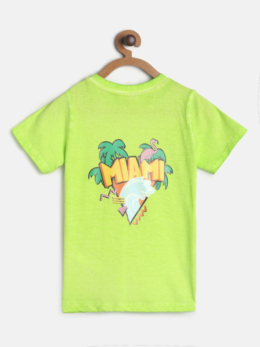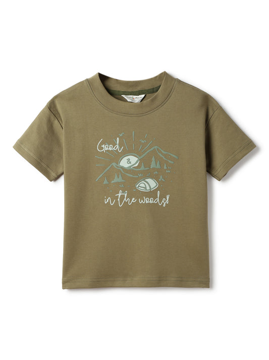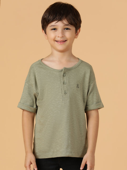 Boys Olive Viscose Solid Oversized Fit T-Shirt