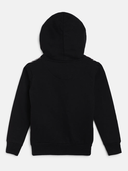 Girls Black Poly-Cotton Embroidery Sweatshirt