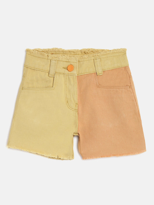 Girls Yellow & Rust Cotton Shorts