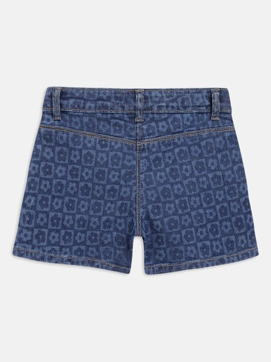 Girls Blue Printed Shorts