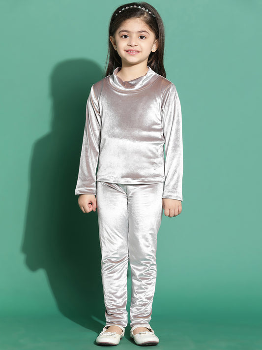 Girls Polyester Silver Top & Legging Co-Ord Set