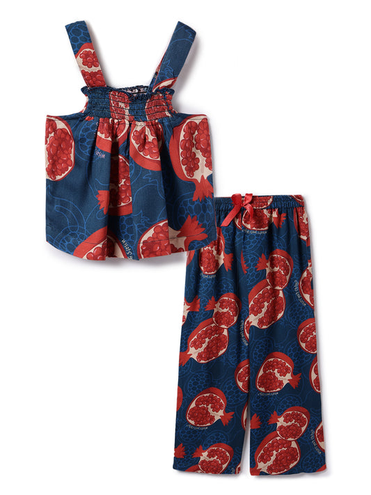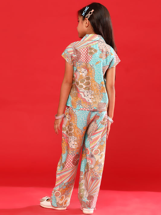 Girls Multi Color Rayon Printed Top With Pant Co-Ord Set