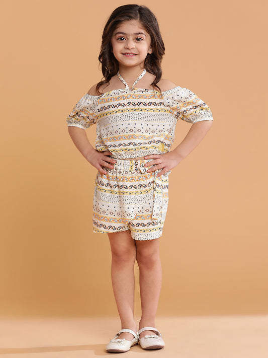 Girls Rayon Yellow Printed Cropped Top With Skort For