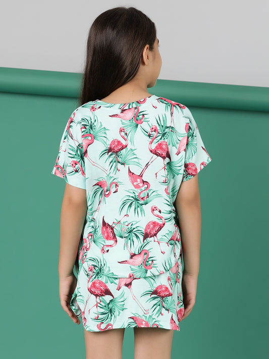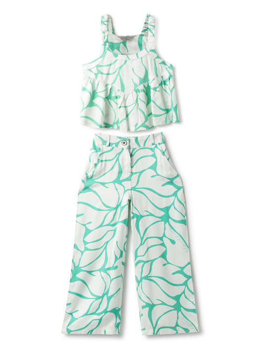 Girls Green Viscose Print Top & Pant Co Ord Set